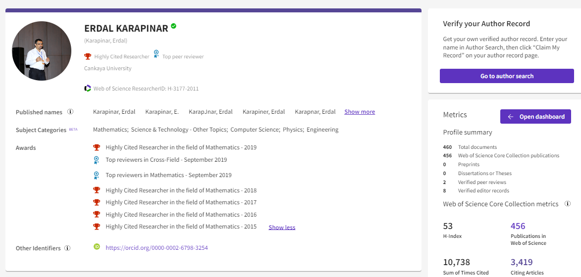 Personal home page of Erdal KARAPINAR full professor in Mathematics visiting professor of CMUH Researcher Author Editor Editor-in-chief plenary speaker